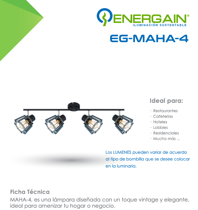 MAHA-4, es una lámpara diseñada con un toque vintage y elegante, Ideal para amenizar tu hogar o negocio.