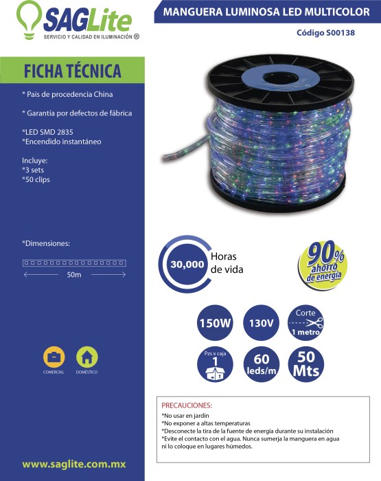 MANGUERA LUMINOSA LED-50 MULTICOLOR 130V SAGLITE S00138